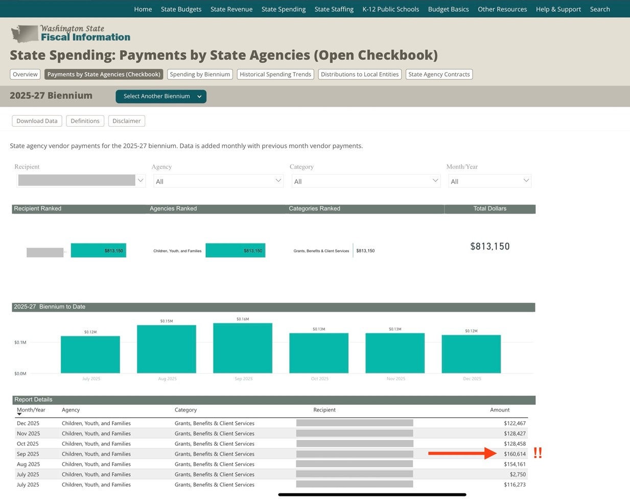 Yet, according to state data, the childcare provider listed at that address receives six-figure monthly payments, bringing in over $160,000 in July alone.