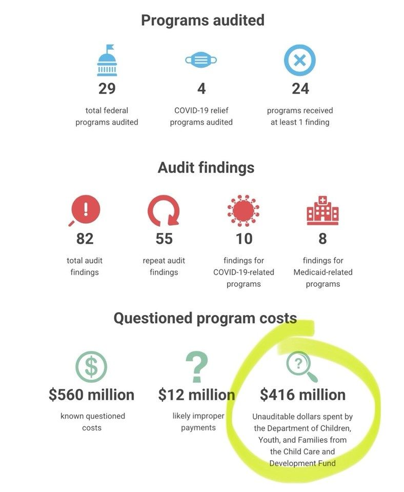 “For the fourth year in a row, we are questioning all childcare payments from the Child Care and Development Fund at the Department of Children, Youth, and Families,” the Auditor’s Office stated.